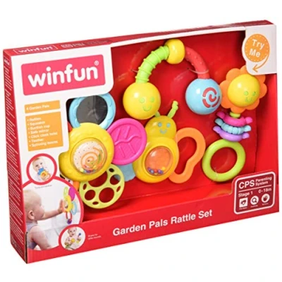 WinFun Multi-sensory rattles pack of 4, suitable for newborns Includes 1 flower with suction cup, 1 butterfly with textures, 1 rotating worm and 1 rattle flower Each toy has different colours, textures and sounds to stimulate all baby's senses Safe toy, no removable or electronic parts that can be accidentally put in your mouth The rattles are a suitable size for storage in the little one's bag or bag, Manufacturer: Colorbaby