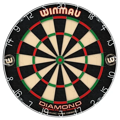 TOURNAMENT APPROVED FOR PROFESSIONAL PLAY: Designed to official tournament standards, the Winmau Dartboard is trusted by top professionals globally. Perfect for practice and competitive play, offering the reliability needed for any standard ADVANCED TRIANGULAR WIRING SYSTEM TO MINIMIZE BOUNCE-OUTS: Winmau's most refined triangular wiring system reduces bounce-outs by guiding darts cleanly into the target. This innovative design ensures more successful throws and higher scoring potential HIGH TENSILE DYNAMIC SECTOR WIRING FOR DURABILITY AND PRECISION: The WINMAU dart board offers high-tensile steel wiring system offers durability and precision. Ensuring your darts stay in place and your game stays smooth throughout intense sessions CNC PRECISION STAPLE-FREE BULLSEYE FOR ULTIMATE ACCURACY: The CNC-engineered, staple-free bullseye provides a clean and precise target area, eliminating interference and deflection, allowing you to hit your bullseye with confidence every time you aim SUPER-DENSE, SELF-HEALING SISAL BASE FOR LONG-LASTING PERFORMANCE: Constructed with super-dense sisal fibers, offering exceptional self-healing qualities that restore its surface after each dart impact. Excellent durability with regular use QUICK & EASY SETUP FOR INSTANT PLAY: The Winmau Diamond Plus Professional Dart board includes an easy, intuitive mounting system that allows for a hassle-free setup. Get your dartboard securely installed and ready for play in just minutes
