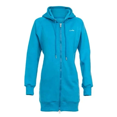 AmazonExtra long cut hoodie jacket with 2 pockets Elasticated cuffs at the bottom Robust 2-way zip and large eyelets for wide ribbons Fluffy, breathable and insulating fabric Eco-friendly