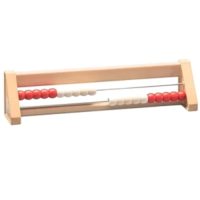 Abacus/Rekenrek 20 bead sloped version, 24 x 4.5 x 6 cm; made of recycled wood; very stable design with stainless steel rods; beads have a diameter of 13 mm Counting and all basic arithmetic operations (addition, subtraction, multiplication and division), but also number size comparisons in the range 0 to 20 can be learned or consolidated easily and vividly Conforms to toy standard DIN EN71-3 Made of re-wood (100% recyclable, certified with the PEFC seal and free of harmful substances) Made in Germany