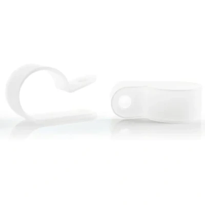 Clamps made of polyamide: these plastic clamps are made of robust polyamide and are ideal for safely guiding cables and pipes along a wall plate Installation: the screw clamps are ideal for guiding cables or pipes through the clamp and attach them to the desired place with a screw (M5) Use: the clamps are ideal as hose clamps, pipe clamps and cable clamps Specifications: diameter: 9.1 mm, size: 3/8 inch, A: 13.4 mm, B: 12.1 mm, C: 1.5 mm, screw hole: diameter 5.3 mm for M5 screws, surface: PA 6.6 Box contents: pack of 100 polyamide clamps 3/8 inch