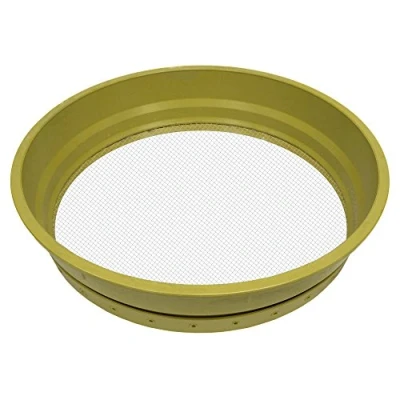Diameter: 450 mm. Height: 100 mm. Hole No.14 (1.6mm) Body made of durable plastic. Reinforced upper Galvanised steel grate. Also called a siever.