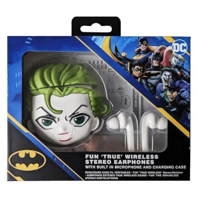 A MUST OF SOUND IN YOUR EARS: Enjoy a unique listening experience with these wireless headphones inspired by the iconic Joker. Its distinctive design adds a touch of fun to your daily routine 🌟STABLE AND UNINTERRUPTED CONNECTION: Equipped with Bluetooth 5.0, these headphones offer a fast and stable connection to enjoy your music without interference, with a range of up to 10m. ✅ TOUCH CONTROLS AND COMPATIBILITY: With its practical touch control you can easily manage your calls and music. They are also compatible with Google Assistant for both Apple and Android devices for instant access. ✅ AUTONOMY AND CONVENIENT CHARGING: With 4-5 hours of play time per charge and a case that allows 2-3 additional charges, you will never run out of music, perfect for your daily life. 🎁 IDEAL GIFT FOR HARRY POTTER FANS: These headphones are the perfect gift for any lover of the saga, ideal for birthdays, Christmas or any special occasion. It combines functionality with a charming design that everyone will love.