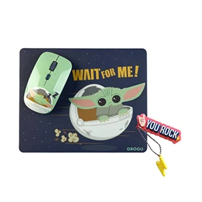 Original Grogu/Baby Yoda Design Mat Pack on Blue Background and Green Wireless Mouse Also with Grogu/Baby Yoda Mousepad with non-slip fabric and adherent for desks of all kinds. Wireless mouse with usb receiver. The USB receiver is stored under the battery cover, inside the mouse, for more practicality. Powered by AAA batteries (not included). Included pendrive with Mr Wonderful design NO PACKAGING INCLUDED