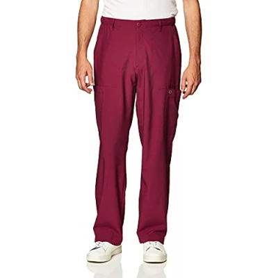 WonderWink 5355AWINESM W123 Men's Flat Front Cargo Pocket Pant, Wine, Standard S Size