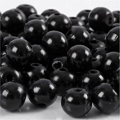 Wooden beads, D: 10 mm, black, 20g, approx. 70 pc