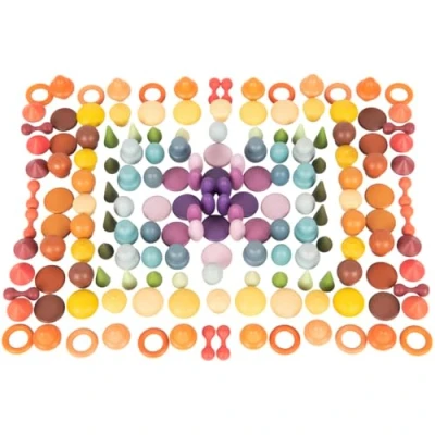 WOODEN TREASURES -- A beautiful set of smooth colourful wooden treasures a versatile open-ended resource designed to stimulate the mind LEARN THROUGH PLAY -- These simple and intriguing items will bring out your child's naturally inquisitive nature IMAGINATION -- Your child can use their limitless imagination to explore ways to incorporate the items into imaginative play and learn about the world around them CREATIVITY -- The set can be used to create pictures and stories, practise counting and sorting and designing patterns and sequences INCLUDES -- 168 coloured wooden treasures supplied in a cotton drawstring storage bag Each of the 14 different treasures comes in 3 shades of 7 organic colours symbolising emotions and senses, Manufacturer: TickiT