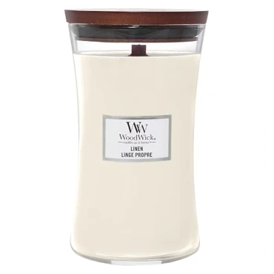 WoodWick Scented Candle Large Linen 18 cm / ø 10 in Glass Wooden Wick