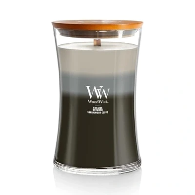 Imagine: after a long day bowl you get home, plop down on the couch and light the candles for some extra coziness. Who wouldn't want to smell a lovely, homey scent as soon as the candles are burning? Enjoy a trilogy of the scents Fireside, Redwood and Sandalwood Clove. The wooden wick gives off a soothing crackling sound, as if the fireplace were lit. Time to relax. With this WoodWick scented candle you will enjoy approximately 130 burning hours of a wonderfully fragrant candle that stimulates all the senses. This candle contains 3 scents that you can smell individually, but also mix wonderfully. * Fireside: The cozy scent of a warm, crackling fireplace. * Redwood: A rich scent of redwood with sandalwood and softened by a touch of amber. * Sandalwood Clove: Fragrant notes of ylang-ylang, vanilla and suede, enveloped in a cozy layer of warm sandalwood.
