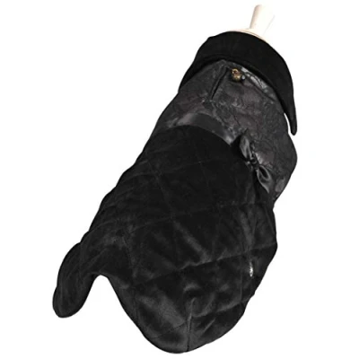 Wouapy Opera is made from a velvet fabric and satin ribbon 100% polyester The coat is equipped with buttons and a zip opening on the back It is waterproof treated 100% polyester fleece lining protects your dog from the cold Size is the distance between the base of the tail and the base of the neck of your dog
