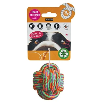 Original rope toy: the toys come in different shapes, each more original than the other. Marine knots, human shapes, there is something for everyone. CONVENIENT ROPE TOY: These rope toys will stimulate your pet's oral hygiene by massaging the gums and removing soft tartar from teeth. INTERACTIVE ROPE TOY: These toys will stimulate the complicity that binds the dog to its owner. They throw or pull each other for the greatest pleasure of dogs. DURABLE ROPE TOY: The rope toys are made with durable recycled cotton fibers. Some even have an unrestrained chew ball! SIZE: Wouapy rope toys are designed for medium to large dogs.
