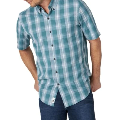 Wrangler Authentics Men's Button Down Shirt, Brittany Blue Plaid, L