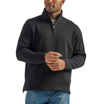 Wrangler Authentics Men's Sweater Fleece Quarter Zip Pullover, Caviar, S
