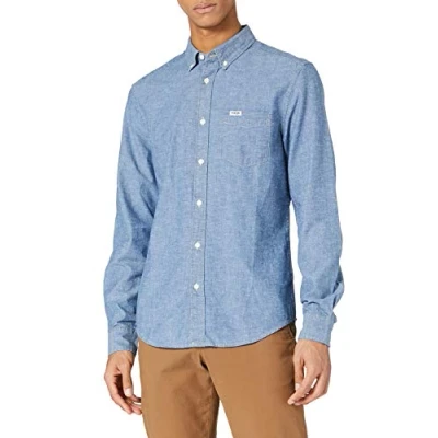 Wrangler Men's Pocket Button Shirt, Mid Indigo, S