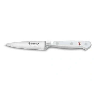 The Wüsthof Classic White knife series combines modern lightness with the best quality with its unique, white handles. So the high-quality Solingen knives are the elegant extra in any kitchen – e.g. this small chef's knife White knife with slim, pointed blade (9 cm) - if herbs, small vegetables or fruit are to be processed, the short office knife as a vegetable knife, fruit knife or paring knife is a real utility knife - also for fine cuts as a meat knife The all-purpose knife in a classic design is ideally balanced, sits comfortably in the hand and supports safe cutting. The ergonomic handle is riveted without joints, very hygienic and easy to clean - an elegant, really good knife The ultra-sharp blade of the chef's knife professional knife is forged from Wüsthof steel (58° Rockwell), ground in a laser-based sharpening process and gets its final polishing trigger by hand - and thus its extreme, long-lasting sharpness This white, high-quality knife from Wüsthof is ideal for everyday kitchen work and is also a nice gift idea. A reliable professional kitchen knife from a real traditional company - Made in Germany, forged in Solingen, Weight: 0.15652820602 pounds, Manufacturer: Wüsthof