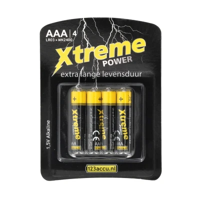 123-3D IEThese Xtreme Power AAA batteries are suitable for a large number of electrical appliances. These 1.5V alkaline batteries have an extra long life. The package contains 4 pieces (not rechargeable).