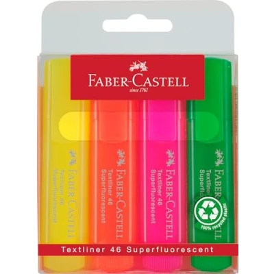 Wallet of 4 ICE Texdtliners Faber-Castell 4 super-fluorescent colours bring variety Excellent marking on all standard types of paper The durable tip marks in the line widths 5 mm, 2 mm and 1mm Water based ink
