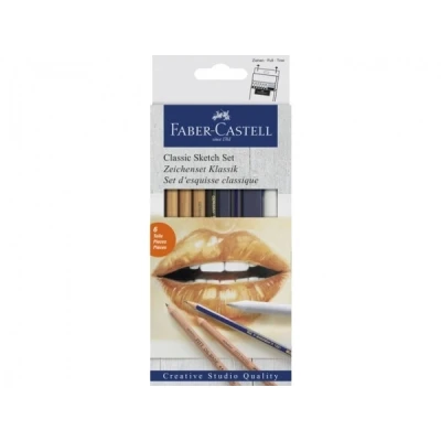 The Faber-Castell Goldfaber Drawing Set Classic contains 5 pencils for serious hobbyists. The set contains a 2B graphite pencil and several Pitt pastel pencils (both oil-free and oil-containing). With the pastel pencils you can create beautiful effects and fine details in your drawings. Create swipe effects, shadows and colour transitions with the included feather tool. The pastel pencils must be sharpened with a knife.The set contains:1 x 2B graphite pencil1 x Pitt medium oil-based pencil1 x Pitt pastel white medium1 x Pitt pastel sanguine (oil-free)1 x Pitt Pastel sepia light (oil-free)1 xfeather pencil