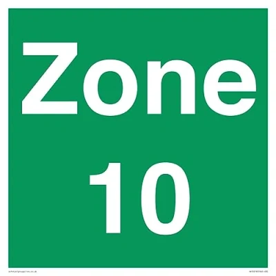 No Symbol This sign is made from plastic semi-rigid 1mm 1mm thin plastic sign, can be screwed, stuck with adhesive, or attached with cable ties. Not suitable for hanging. S30 square Sign Text: Zone 10