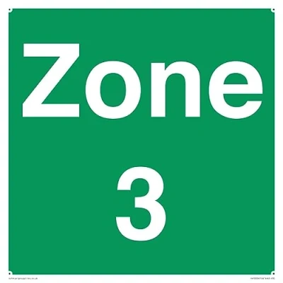 No Symbol This sign is made from vinyl / sticker Air Release vinyl makes it easy to stick to flat, clean surfaces without bubbles. Not for rough, plastic or dusty surfaces. S30 square Sign Text: Zone 3