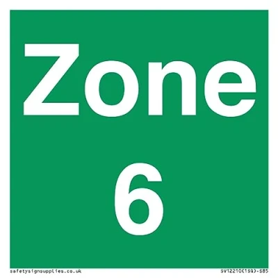 No Symbol This sign is made from plastic semi-rigid 1mm 1mm thin plastic sign, can be screwed, stuck with adhesive, or attached with cable ties. Not suitable for hanging. S85 square Sign Text: Zone 6