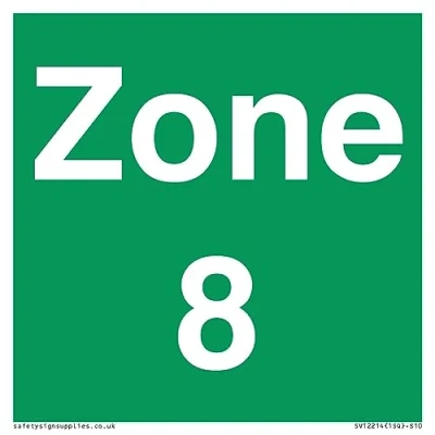 No Symbol This sign is made from plastic rigid 3mm 3mm plastic sign with foam core. Can be screwed, stuck with adhesive or hung with a hanging kit. Not suitable for cable ties. S10 square Sign Text: Zone 8