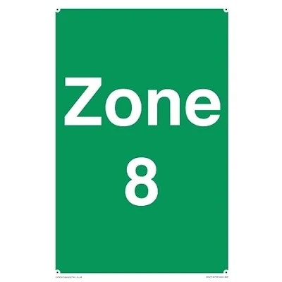No Symbol This sign is made from plastic rigid 3mm Comes with4mm Corner Holes. 3mm plastic sign with foam core. Can be screwed, stuck with adhesive or hung with a hanging kit. Not suitable for cable ties. A4 portrait Sign Text: Zone 8