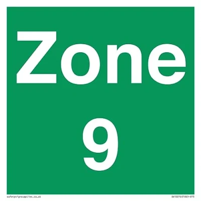 No Symbol This sign is made from plastic semi-rigid 1mm 1mm thin plastic sign, can be screwed, stuck with adhesive, or attached with cable ties. Not suitable for hanging. S15 square Sign Text: Zone 9